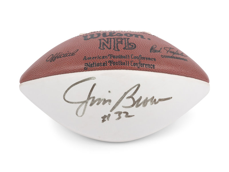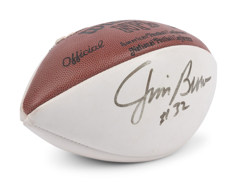 inscribed "Jim Brown #32" in gold ink.