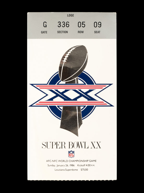 A January 26, 1986 Chicago Bears Super Bowl XX Ticket Stub (Bears 46, Patriots 10)