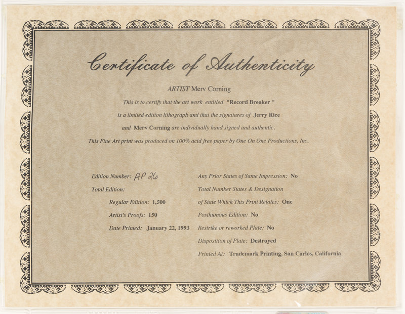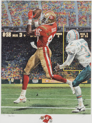 A 1993 Jerry Rice Signed Autograph Limited Edition "Record Breaker" Merv Corning Print