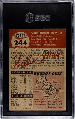 A 1953 Topps Willie Mays Baseball Card No. 244 (SGC 3 VG)