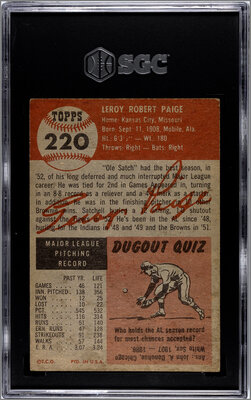 A 1953 Topps Satchel Paige Baseball Card No. 220 (SGC 3.5 VG+)