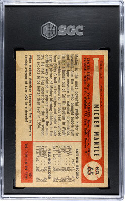 A 1954 Bowman Mickey Mantle Baseball Card No. 65 (SGC 4.5 VG-EX+)