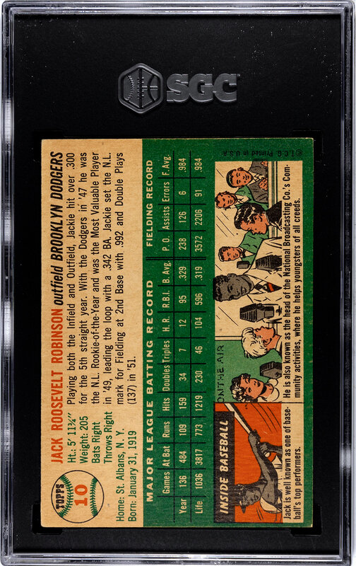 A 1954 Topps Jackie Robinson Baseball Card No. 10 (SGC 4 VG-EX)