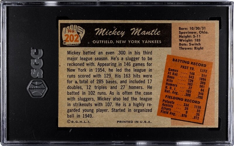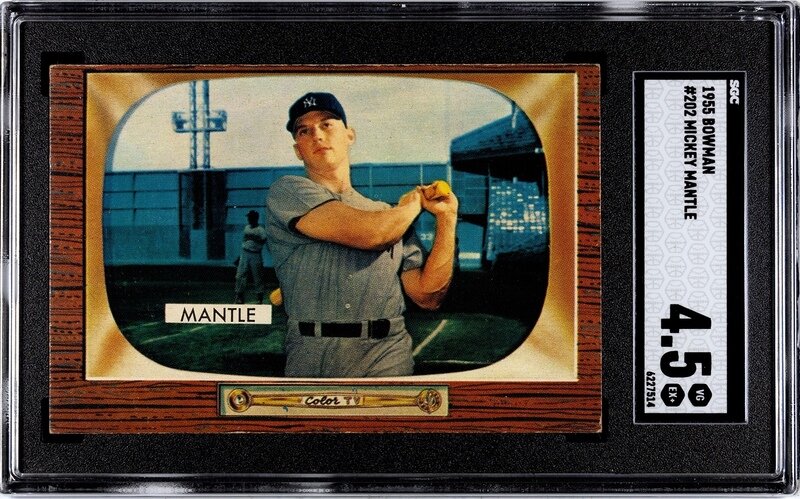 A Group of 1955 Bowman Mickey Mantle and Willie Mays SGC Graded Baseball Cards No. 202 (SGC 4.5 VG-EX+)