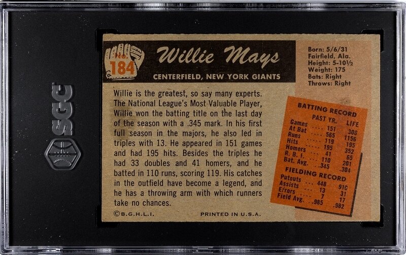 comprising Willie Mays No. 184 (SGC Authentic) and Mickey Mantle No. 202 (SGC 4.5 VG-EX+).