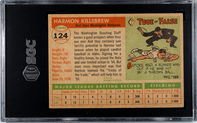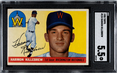 A 1955 Topps Harmon Killebrew Rookie Baseball Card No. 124 (SGC 5.5 EX+)