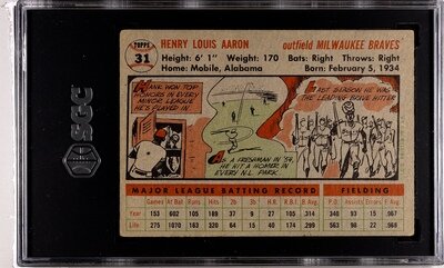 A 1956 Topps Hank Aaron Baseball Card No. 31 Gray Back (SGC 4 VG-EX)