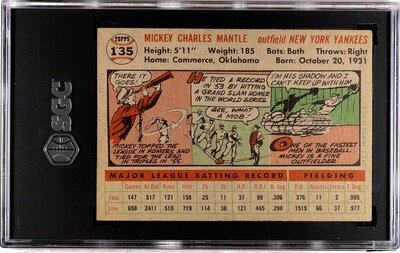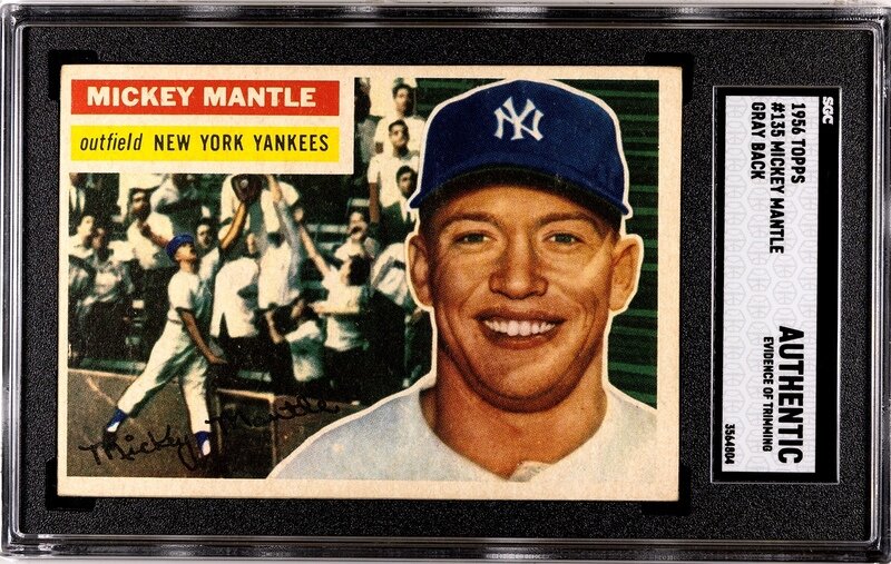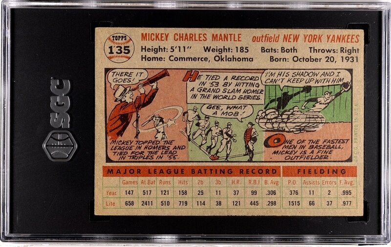 A 1956 Topps Mickey Mantle Baseball Card No. 135 Gray Back (SGC Authentic)