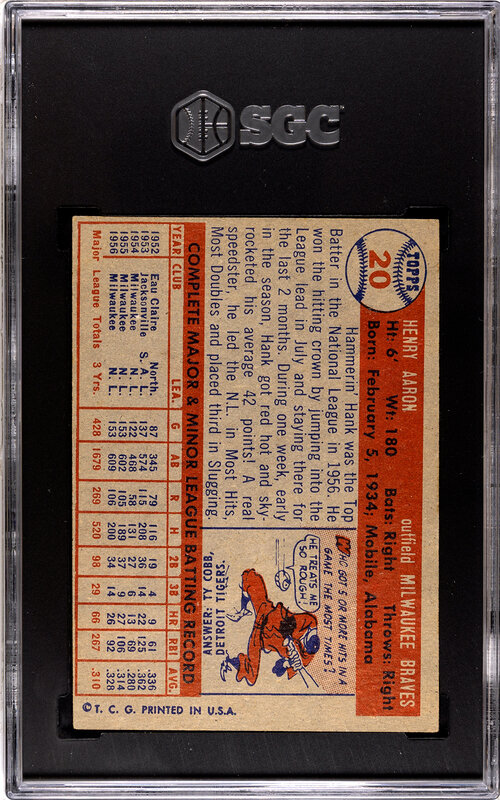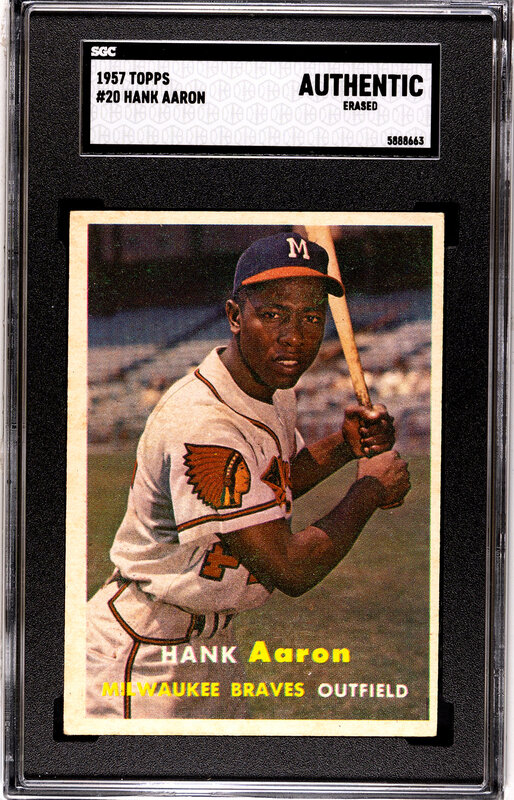 comprising Hank Aaron No. 20 (SGC Authentic), Ernie Banks No. 55 (SGC 5 EX) and Mickey Mantle No. 95 (SGC Authentic).