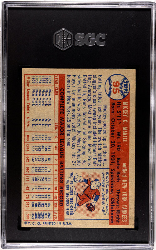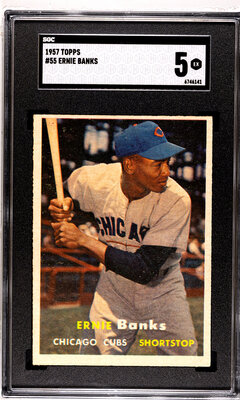 A Group of 1957 Topps Mickey Mantle, Hank Aaron and Ernie Banks Baseball Cards No. 20 (SGC Authentic)