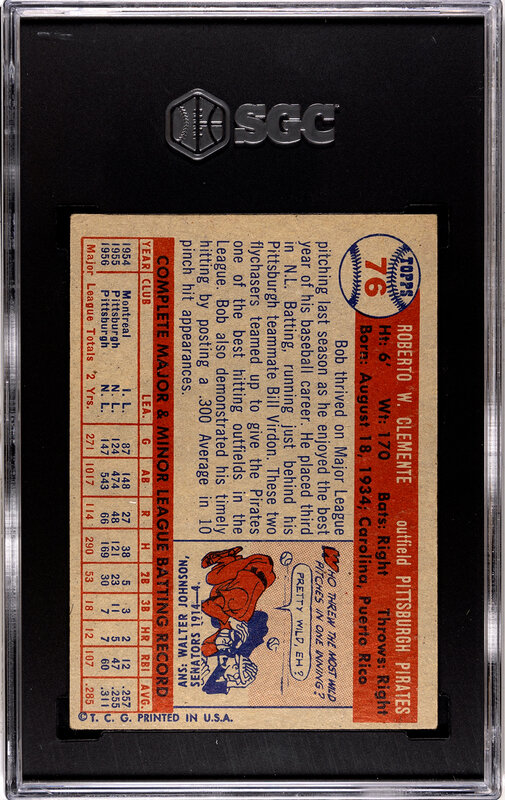 A 1957 Topps Roberto Clemente Baseball Card No. 76 (SGC 5 EX)