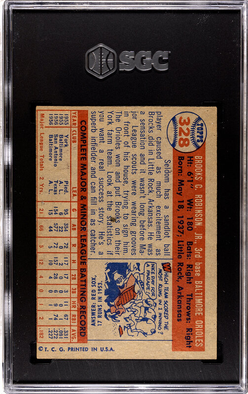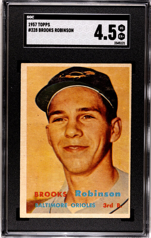 A 1957 Topps Brooks Robinson Rookie Baseball Card No. 328 (SGC 4.5 VG-EX+)