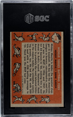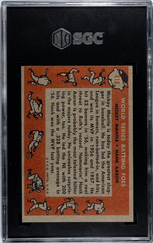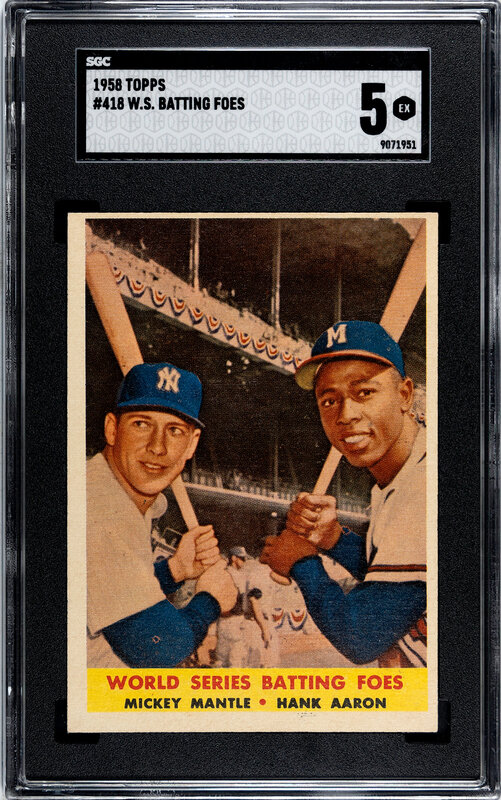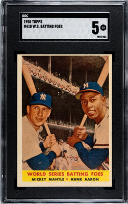 A 1958 Topps Mickey Mantle and Hank Aaron World Series Batting Foes Baseball Card No. 418 (SGC 5 EX)