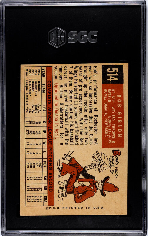A 1959 Topps Bob Gibson Rookie Baseball Card No. 514 (SGC 3.5 VG+)