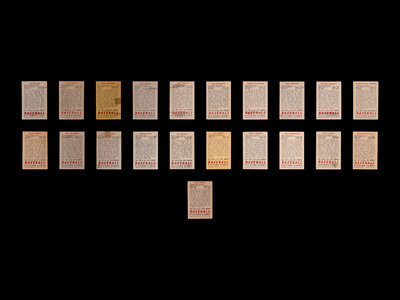 comprising card numbers: 5, 8, 9, 12, 16, 19, 23, 24, 25, 28, 29 (x2),30, 32, 33, 35, 37, 39, 41, 42, 45, 47, 50, 53, 54, 60, 61, 63, 65, 66, 67, 68, 69, 70, 72, 73, 77, 79, 83 (x2), 84, 85, 86, 87, 88, 90, 91, 92, 93, 94 (x2),95, 96, 97 (x2),98, 99, 100, 103, 106, 110, 114, 115, 116, 117, 118, 120, 121, 122, 123, 124, 125, 129, 130, 131, 135, 137, 138, 139, 140, 142, 143, 144, 146, 147, 150, 151, 152, 154, 155, 156, 157, 158, 159, 160, 161, 162, 163, 164, 166, 167, 168, 169, 171, 172 (x2), 173, 174, 175, 176, 177, 179, 180, 185, 187, 188, 190, 192, 193, 196, 197, 199, 202, 203, 206, 207, 209, 210, 211, 213, 214, 216, 217, 218, 219, 220, 221, 222, 223, 226, 227, 229, 231, 233, 234, 235, 236, 237, 238, 240, 242, 243, 244, 246, 247, 248, 250, 251, 252, 263, 267, 271, 272, 278, 279, 290, 291, 307, 313, 315, 317, 322.