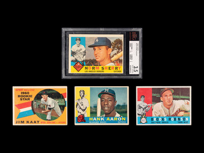 comprising Brooks Robinson (No. 28); Jim Kaat (No. 136); Hank Aaron (No. 300); Norm Sherry (No. 529).