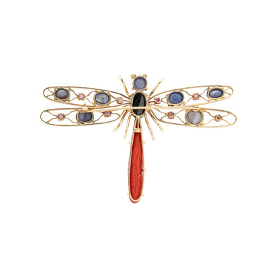 YELLOW GOLD AND MULTIGEM DRAGONFLY BROOCH