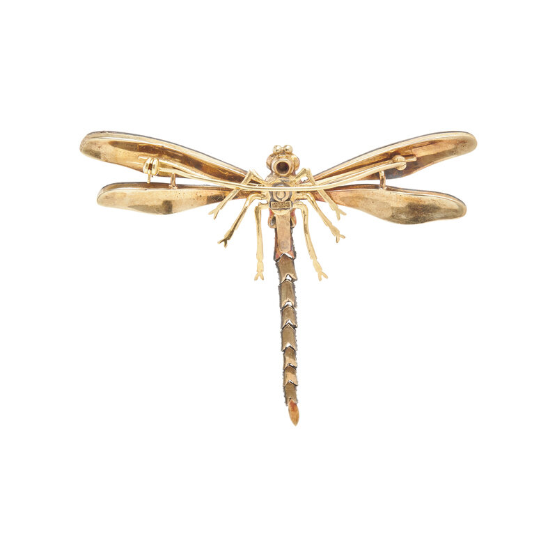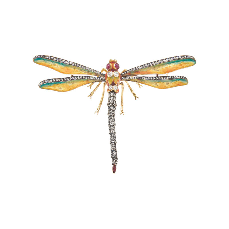 ENAMEL, DIAMOND AND MULTIGEM ARTICULATED DRAGONFLY BROOCH