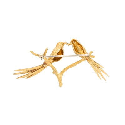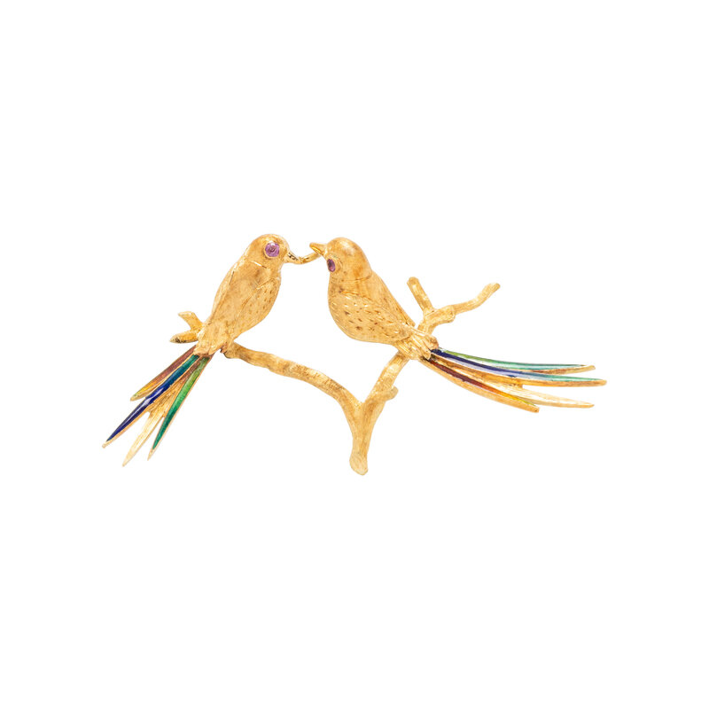 CARL BUCHERER, YELLOW GOLD AND ENAMEL BIRD PIN
