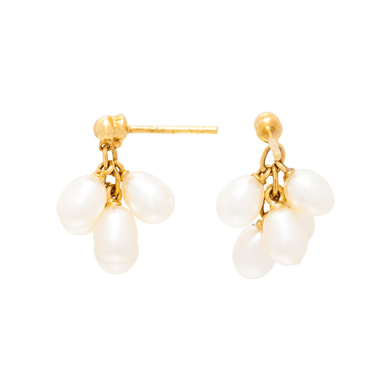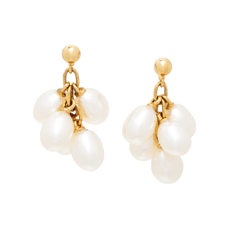 Cultured pearls measuring approximately 6.00 x 5.00 mm. 18 karat yellow gold. 3/4 inch long.