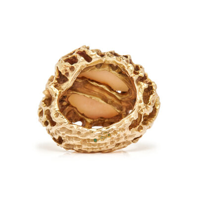 YELLOW GOLD AND ANGEL SKIN CORAL RING