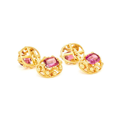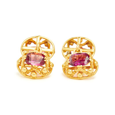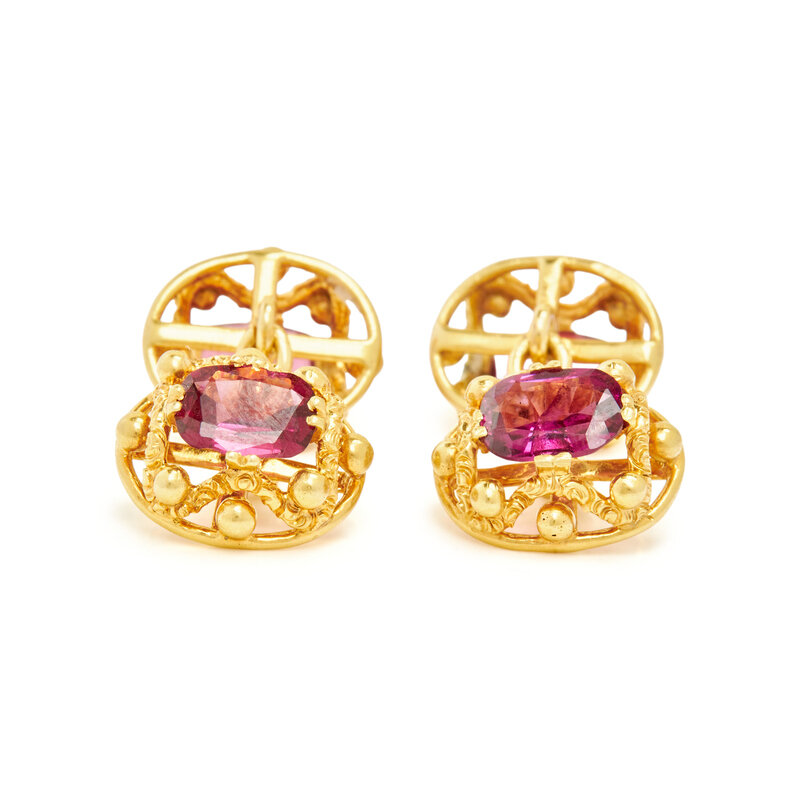 Oval garnets measuring approximately 8.00 x 6.00 mm. 18 karat yellow gold. 1/2 inch wide.