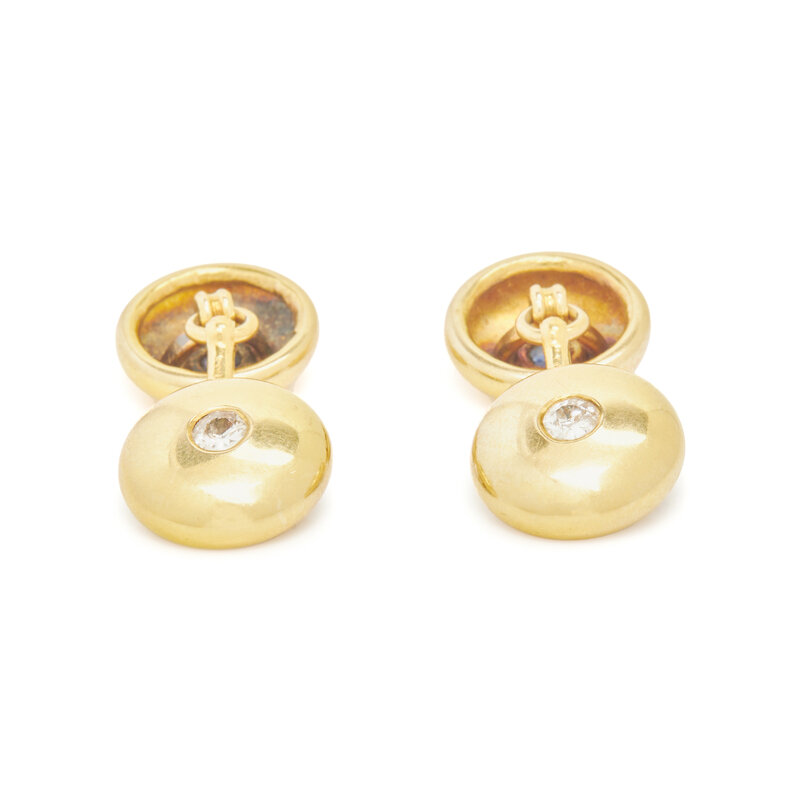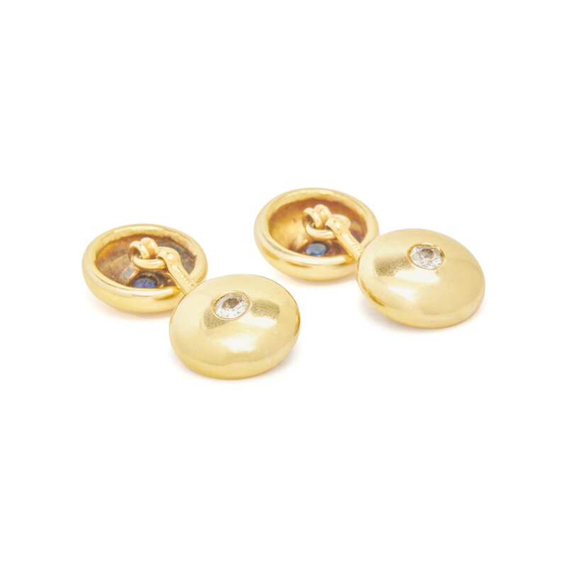 TIFFANY & CO., YELLOW GOLD, DIAMOND AND SAPPHIRE CUFFLINKS
