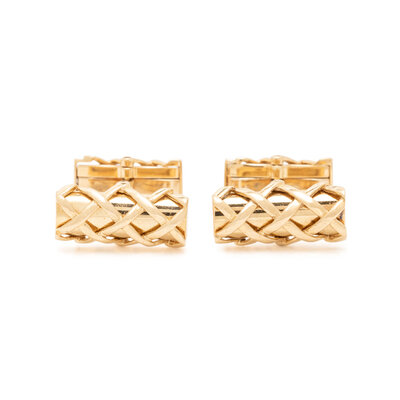 Cross hatch design. 18 karat yellow gold. 3/4 inch long.