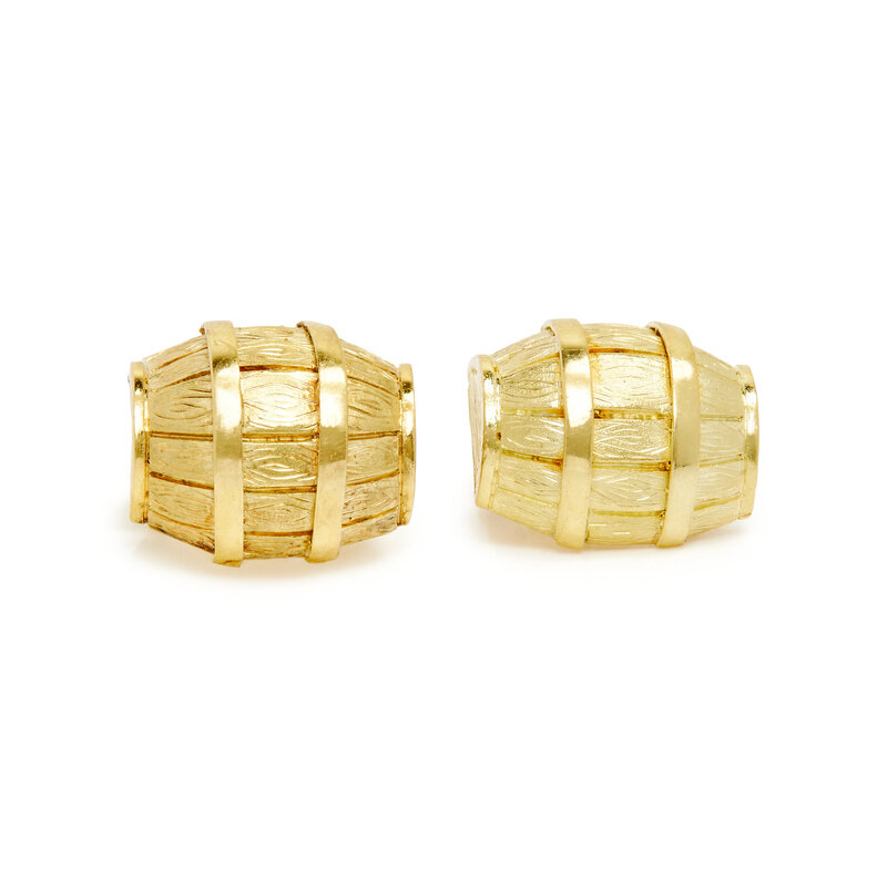 18 karat yellow gold. 1/2 x 3/4 inch wide.