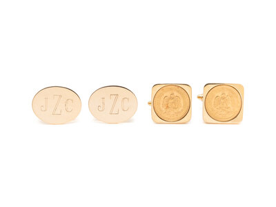 Consisting of a pair of oval monogramed cufflinks and a pair of coin cufflinks.
