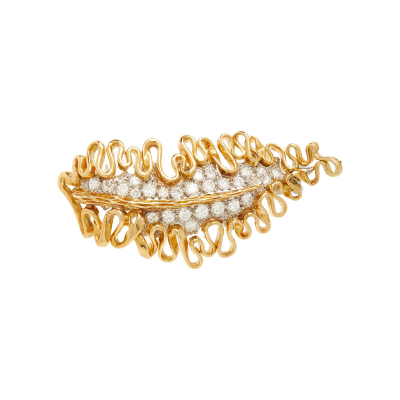 YELLOW GOLD AND DIAMOND LEAF BROOCH