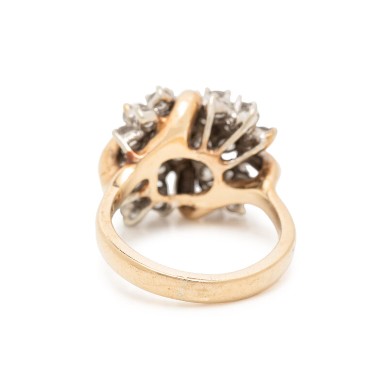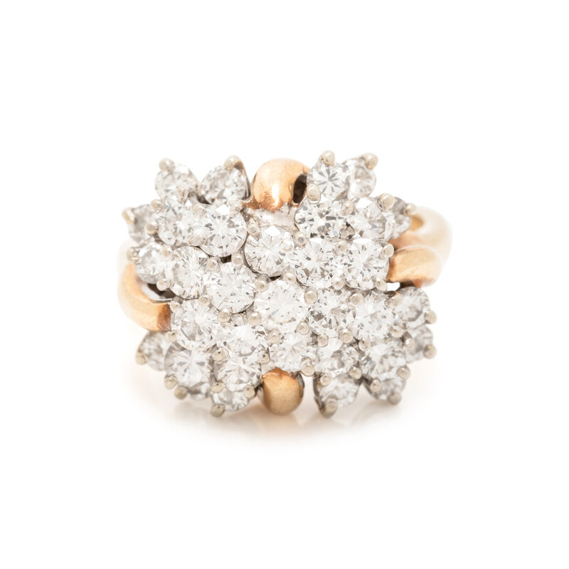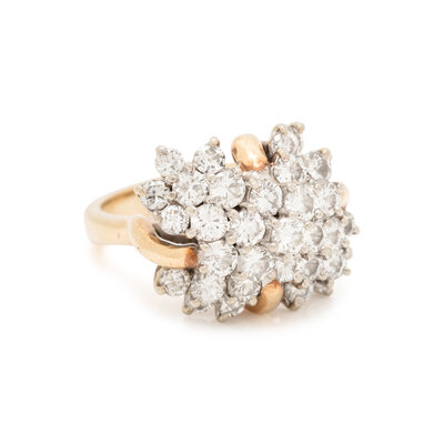Containing 33 round brilliant cut diamonds weighing approximately 3.00 carats total. 14 karat yellow and white gold. Ring size 7 3/4.