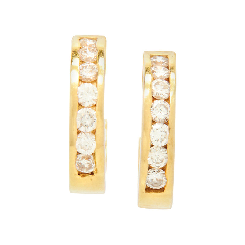 Round brilliant cut diamonds. 18 karat yellow gold. 1/2 inch long.