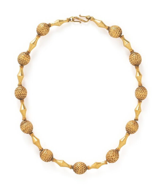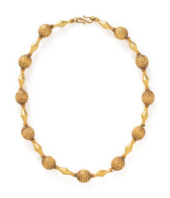 Fancy links measuring approximately 13.00 mm wide. Yellow gold. 17 1/2 inches long.