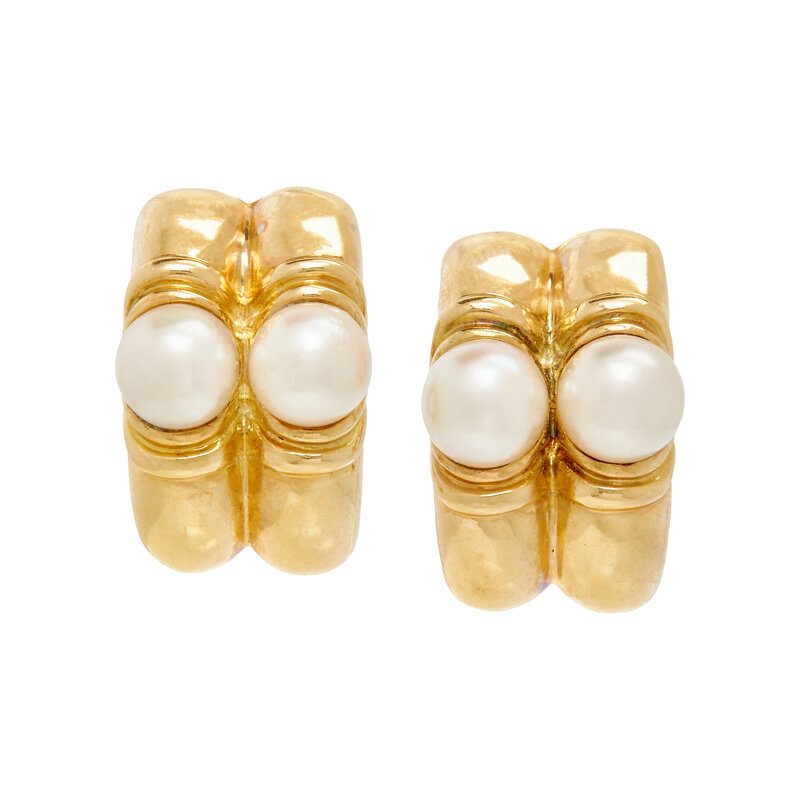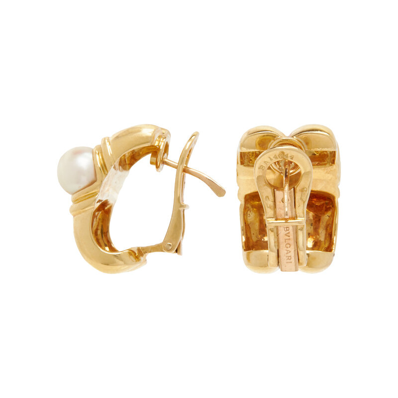 BULGARI, YELLOW GOLD AND CULTURED PEARL EARRINGS
