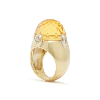 YELLOW GOLD, CITRINE AND DIAMOND RING