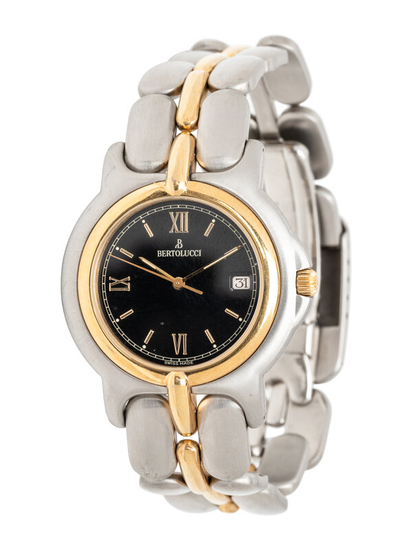 BERTOLUCCI, STAINLESS STEEL AND YELLOW GOLD DATE WATCH