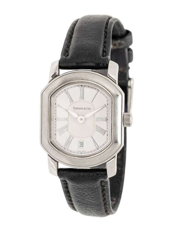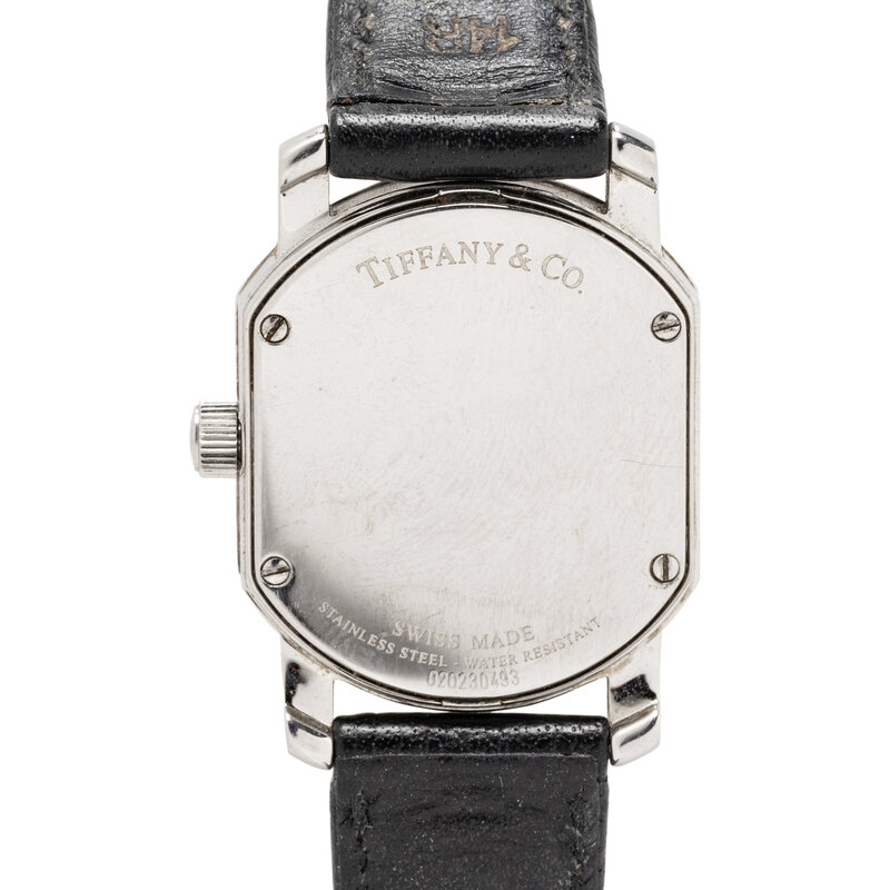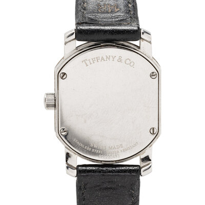 Bracelet/Strap: Black leather signed Tiffany & Co.