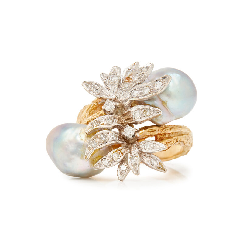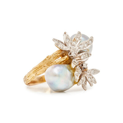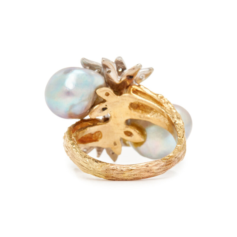 DIAMOND AND CULTURED BAROQUE PEARL BYPASS RING