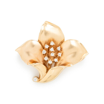 YELLOW GOLD AND DIAMOND FLOWER PENDANT/BROOCH