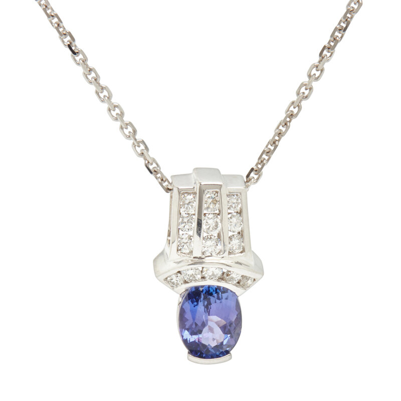 TANZANITE AND DIAMOND PENDANT/NECKLACE