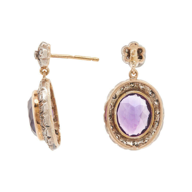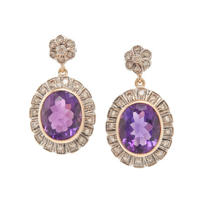 SILVER-TOPPED GOLD, AMETHYST AND DIAMOND EARRINGS