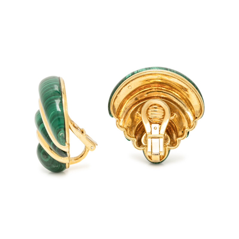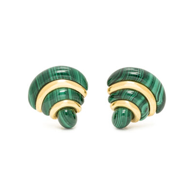 ROBERT ALTMAN, YELLOW GOLD AND MALACHITE AND EAR CLIPS