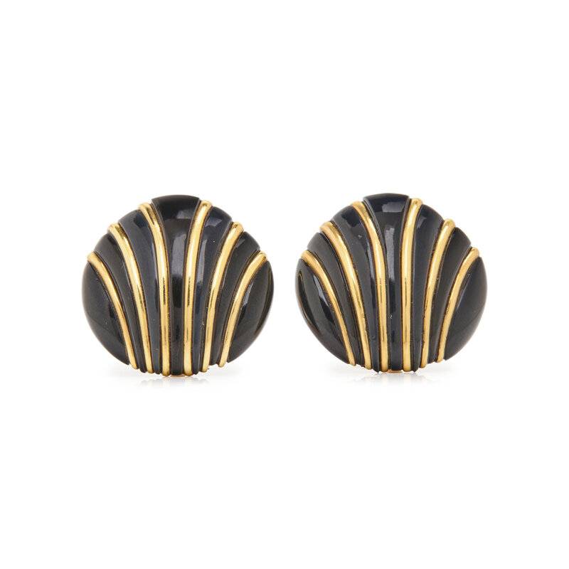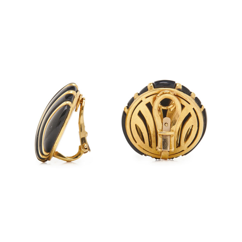 YELLOW GOLD AND ONYX EAR CLIPS