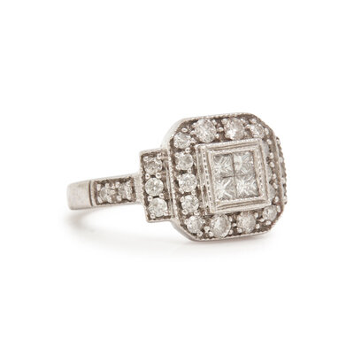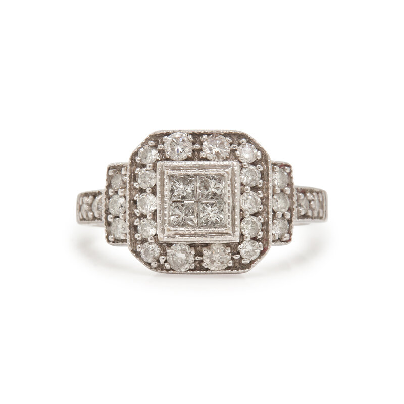 Princess-cut diamond ring stamp: 14K (maker's mark).