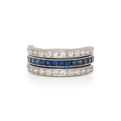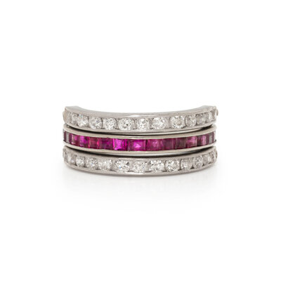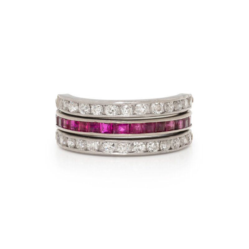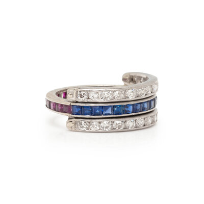 PLATINUM, DIAMOND, RUBY AND SAPPHIRE ETERNITY FLIP RING