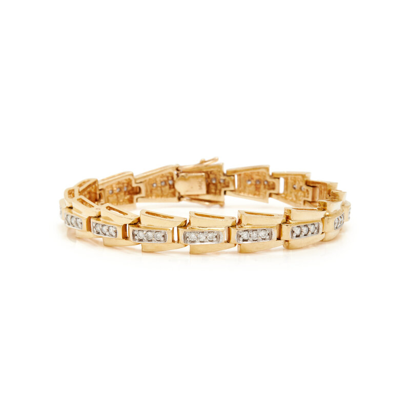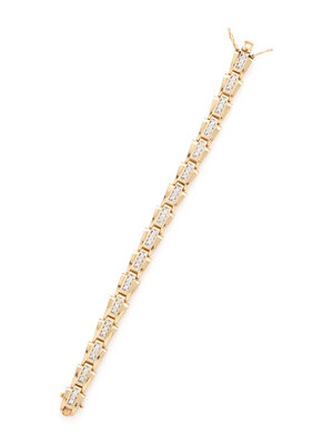 Round brilliant cut diamonds weighing approximately 1.20 carat total. 14 karat yellow and white gold. 6 5/8 inches long.