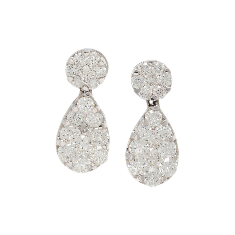 Containing illusion-set round brilliant cut diamonds weighing approximately 3.30 carats total. Mounted in white gold. 3/4 inches long.