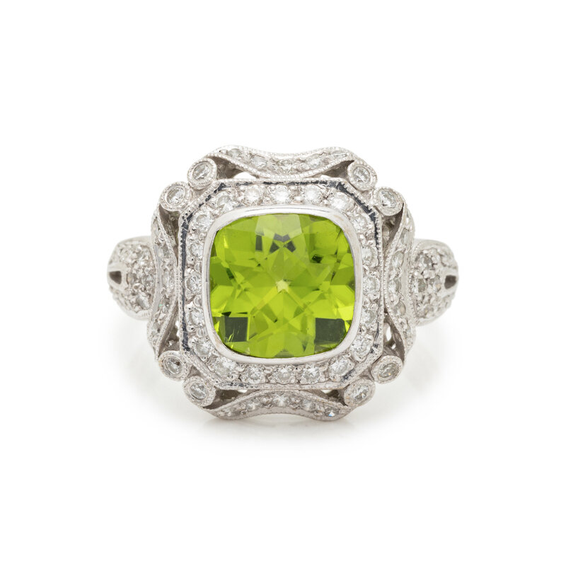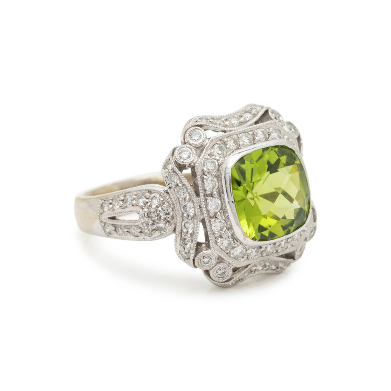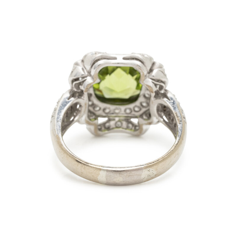 WHITE GOLD, DIAMOND, AND PERIDOT RING