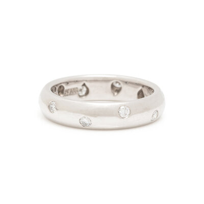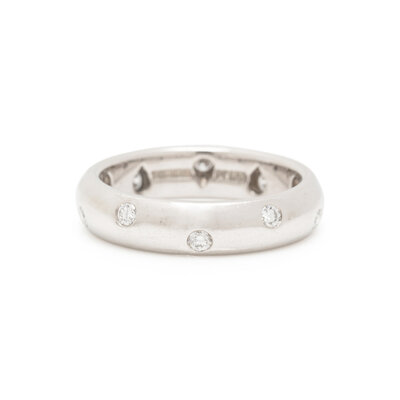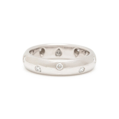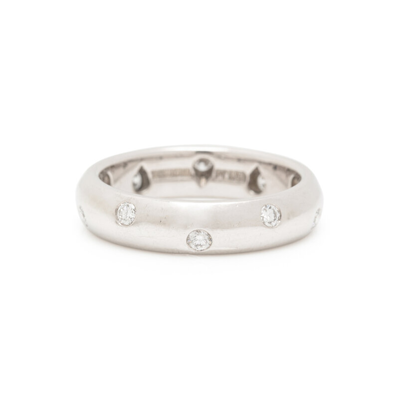 Containing ten round brilliant cut diamonds weighing approximately 0.30 carat total. Mounted in platinum. Ring size 4 1/2.